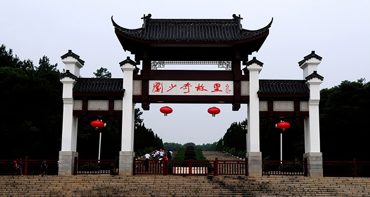 1988年11月24日,劉少奇誕辰90周年之際落成的劉少奇銅像廣場占地面積8000多平方米(包括踏步)。兩邊山頭青松傲立,綠樹掩映。廣場正前方有一個平臺,平臺中央矗立著劉少奇銅像。劉少奇銅像由中華全國總工會捐建,著名雕塑大師劉開渠及弟子程允賢精心制作。銅像加底座共高7.1米,其中像高3.0米,座高4.1米。這個數(shù)字包含著兩層含義:第一,“七一”是黨的生日,劉少奇同志一生致力于黨的建設(shè),為黨和人民的事業(yè)付出了畢生的精力,是黨和國家的卓越領(lǐng)導(dǎo)人。第二,劉少奇同志享年71歲。銅像座西北朝東南,面部神情威嚴(yán)中帶著微笑,滿懷滄桑地眺望遠(yuǎn)方,再現(xiàn)了作為黨和國家主要領(lǐng)導(dǎo)人之一的劉少奇風(fēng)塵仆仆、日理萬機(jī)的光輝形象,使人油然而生一種敬意和親切感。
