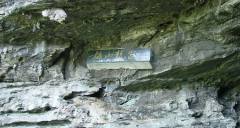 離哪扎出世不到100米處又一個(gè)巨大的石廳,大廳最高處有一座似置于云端的大洞室,面積數(shù)百平方米。洞底十分平坦,并沒有層層石田,流水潺潺,洞口左右兩側(cè)立有直徑約8米,高12米的巨型石柱。此勢(shì)、此景,給人們以此乃玉皇大帝之天宮的境界。